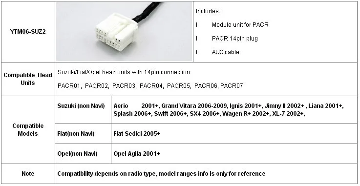Ex: 2007 Swift M13A, 2010 SX4 M16A 4x4, 2007 Forester 2.0X