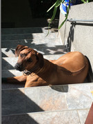 Gazonul trebuie udat dimineata si seara si tuns regulat (cam la 2 sapatamani).Acum ca se face cald, ia bestia si iesiti in natura sa bage niste ture de alergat sanatoase. La rasele cu par scurt, se vede super frumos cand sunt si putin lucrati.