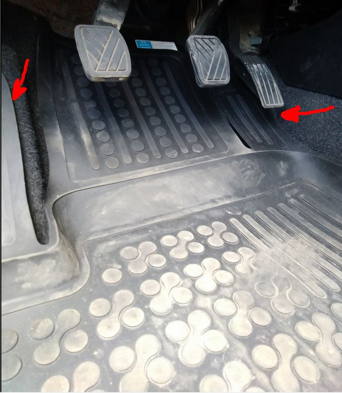 Da si eu a trebuit sa le dau mult in fata ca sa nu agate pedala si a ramas un spatiu liber spre scaun, practic nici nu ajungeau la gaurile de fixare si mult praf se ducea pe mocheta, chiar daca imi placea ca era protejat si locul de odihna. Dupa cum se vede si astea originale tot tavita sunt, iar in zona pedalei, cade cel mult ceva praf, grosul cade in tavita cand te urci. Asa sunt si cele de la Vitara si sunt ok.