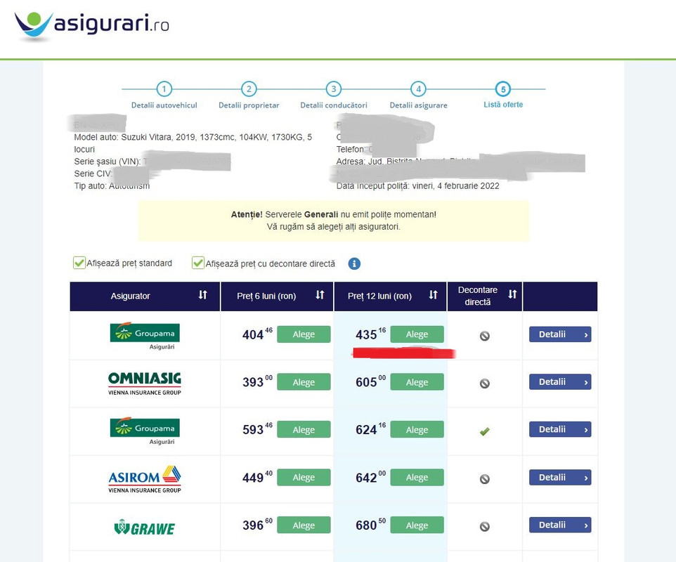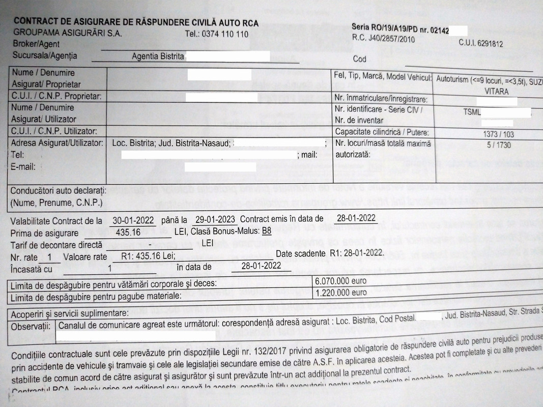 Expira vechea polita la sf. lui Ianuarie .. asa ca am facut pana la urma la GroupAma pe 12 luni cu decontare directa: 1010 lei ... aproape cat Casco-ul