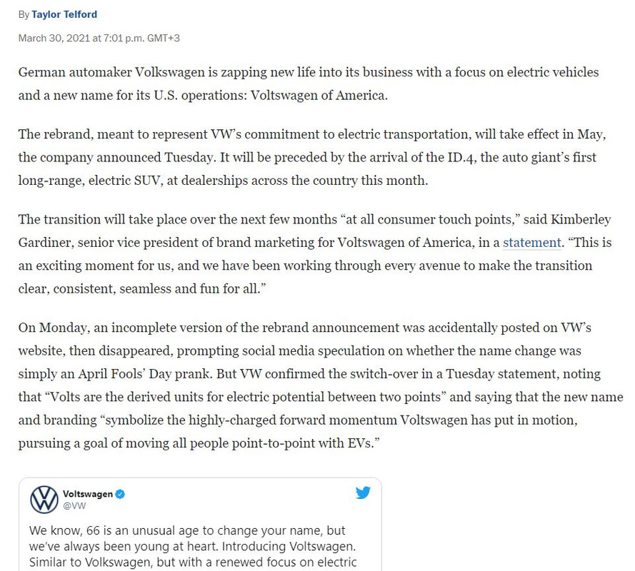 Este o gluma? Voltswagen? Ptiu drace...rămân ăștia cu Passat-urile nevândute!