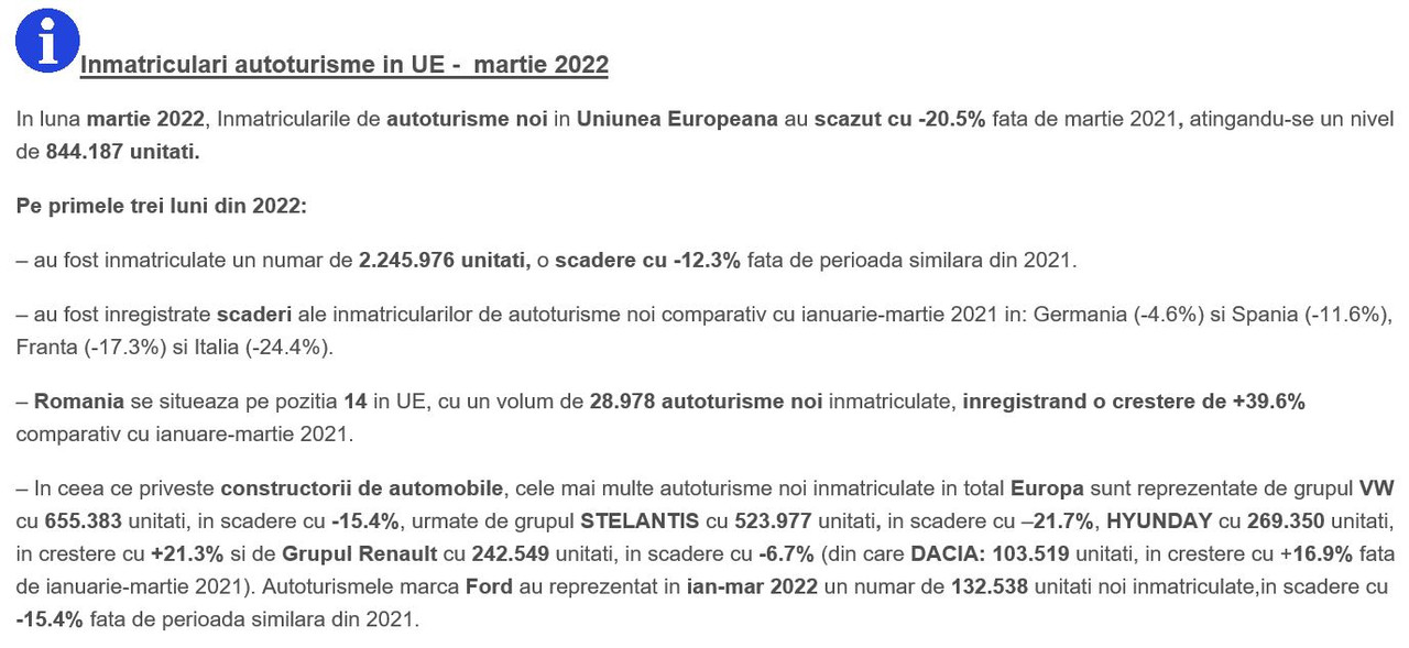 ....pentru optimistii forumului, .... lucrurile stau roz bonbon : Martie 2022 are o crestere de 42,6% fata de Martie 2021, iar primul trimestru a fost mai productiv fata de acelasi din 2021 cu +15,72%. Sa ma ierti