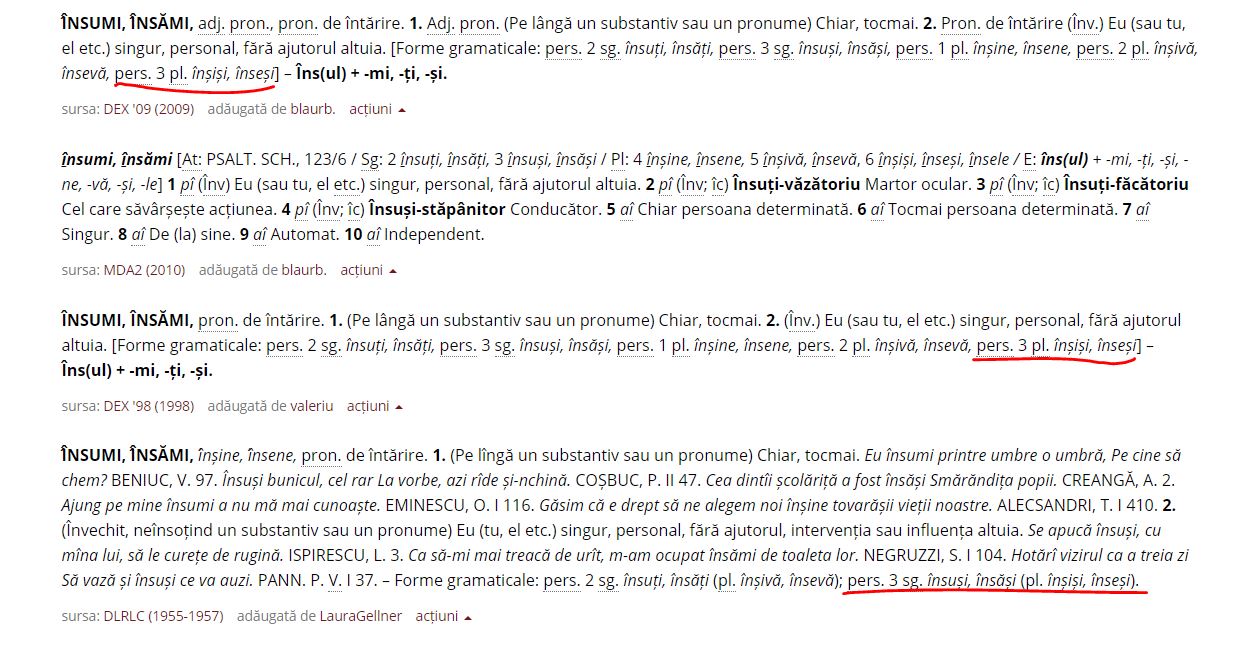 Pentru persoana a 3-a plural, la masculin, forma corectă e înșiși.